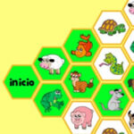 Aprender animales en español es un juego de dictado de animales para niños, en formato oral. Juego de escuchar y aprender animales en español. Escucha el animal en español y haz clic en la celda siguiente que contenga al animal dicho, de forma que la abeja avance en el panal hasta llegar al final. Aprende los animales en español: oveja, rana, cerdo, pez, perro, tortuga o ratón, entre otros animales. Descarga el imprimible con animales en español.